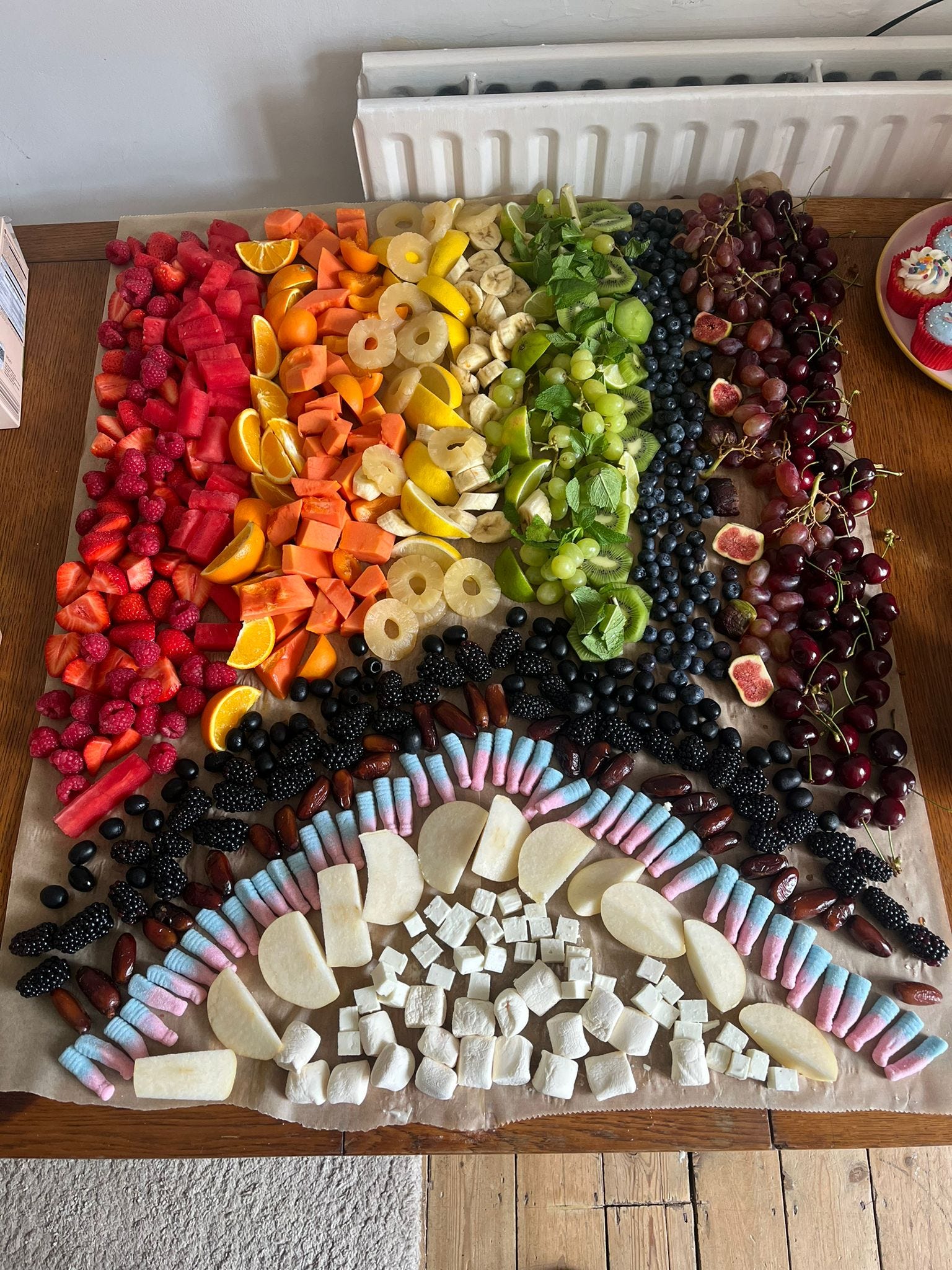 P.S. 🌈 Happy Pride! Check out this creative rainbow made from fruit (and a few olives!) by a friend: